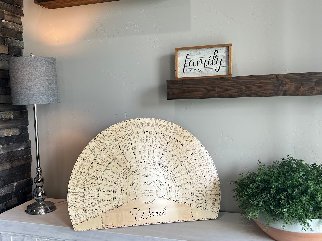 The Forget Me Not can be purchased on its own without a frame, allowing it to be used like a puzzle on a kitchen table or other flat surface; perfect for gathering around with family and exploring your heritage together. Each piece fits together by generation, creating a meaningful and interactive experience. For those who choose to add the frame, we include magnets on the back of each piece, allowing them to securely attach to the custom metal display. This makes the Forget Me Not a truly versatile keepsake, whether you prefer it as a hands-on puzzle or a beautiful piece of wall art, it’s designed to bring families together and celebrate lasting connections.